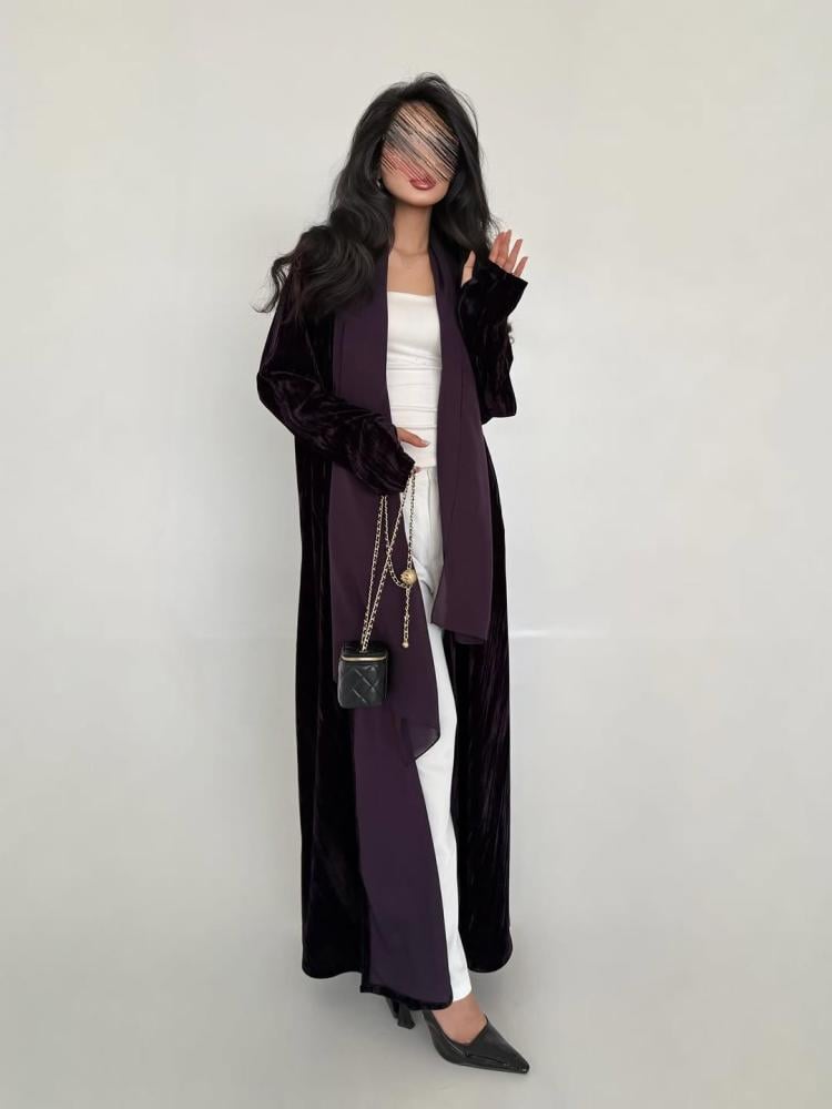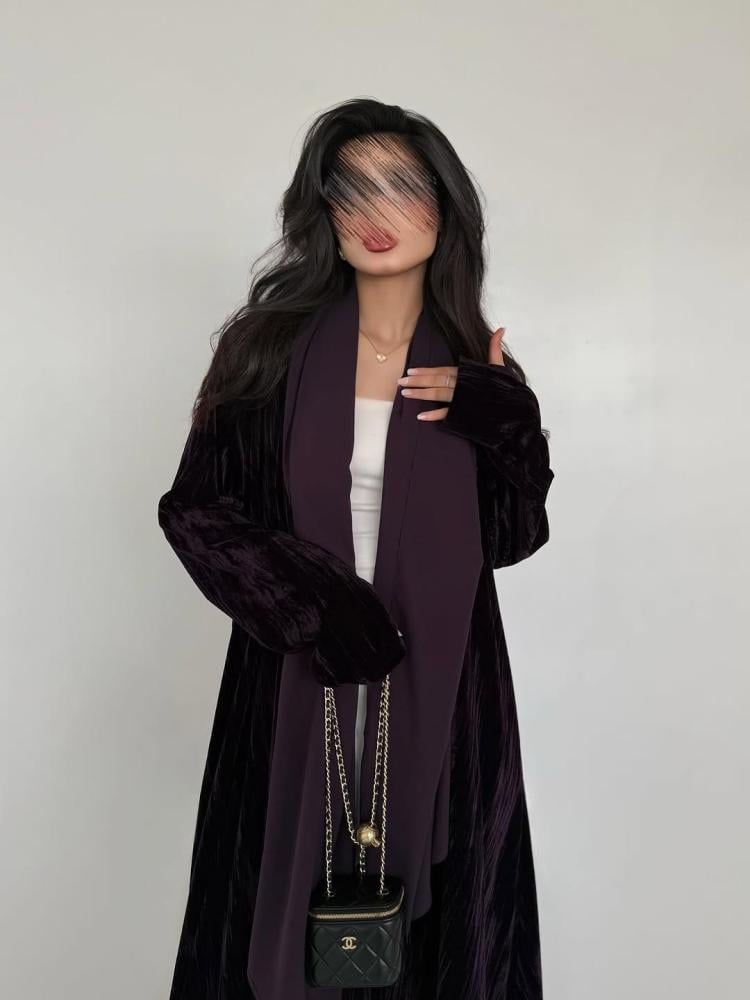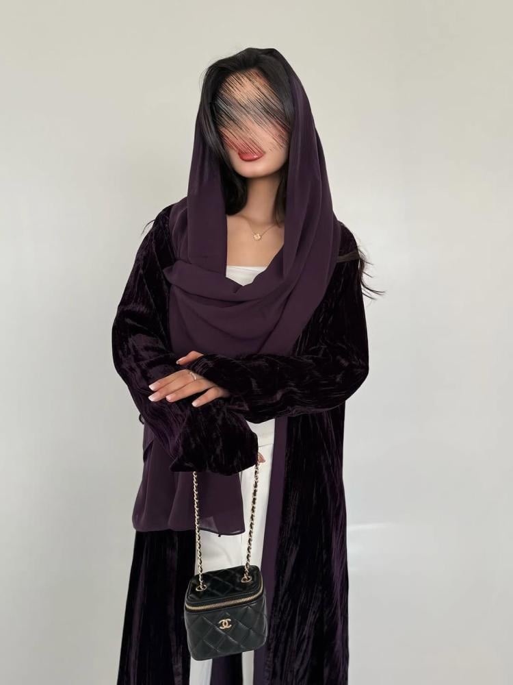 القماش مخمل مكسرالقصة كلوشالون موف ونسوي الون الاسودبالامكان التعديل على القصة حسب الطلب الرجاء كتابة التعديلات في الملاحضات