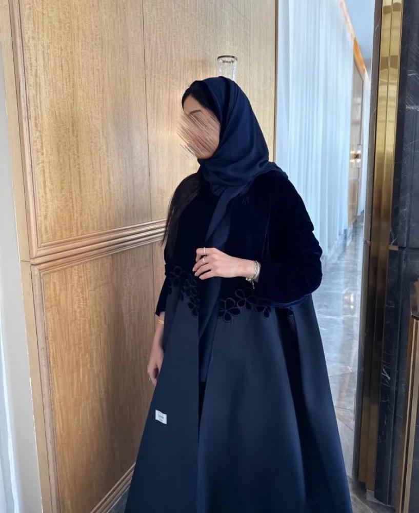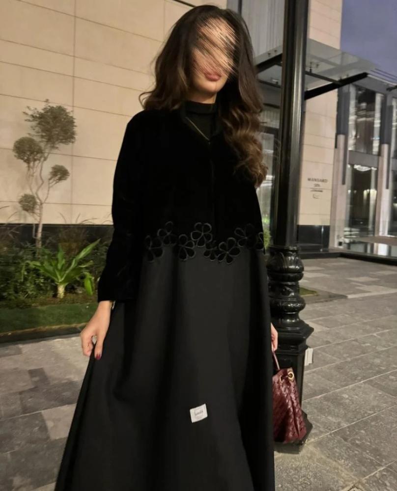 نوع القماش / مخمل مع تدخيلات كريب الكتان ✨