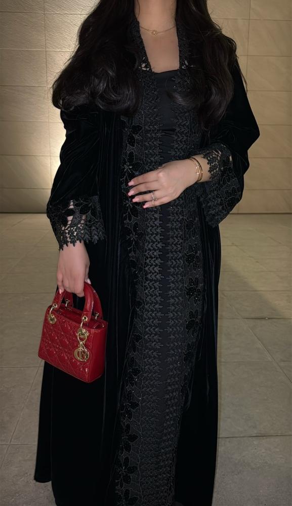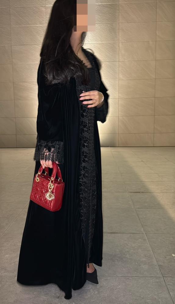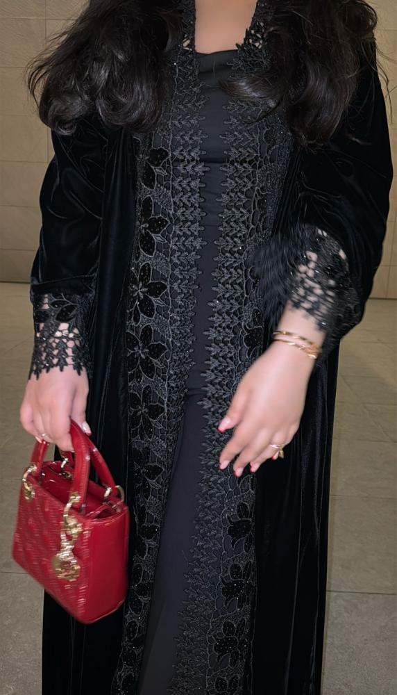عباية مخمل مع دانتيل جوبير-عبايات نوره