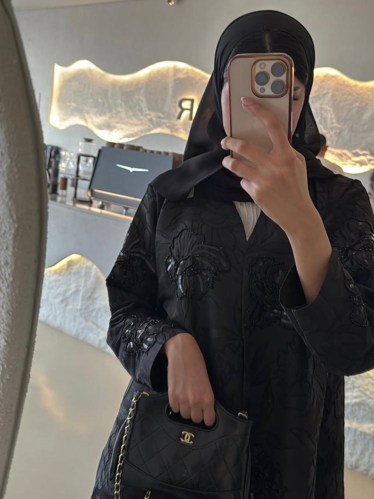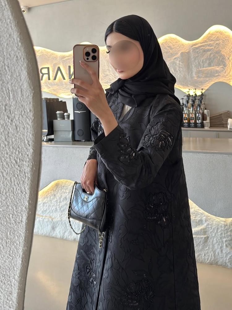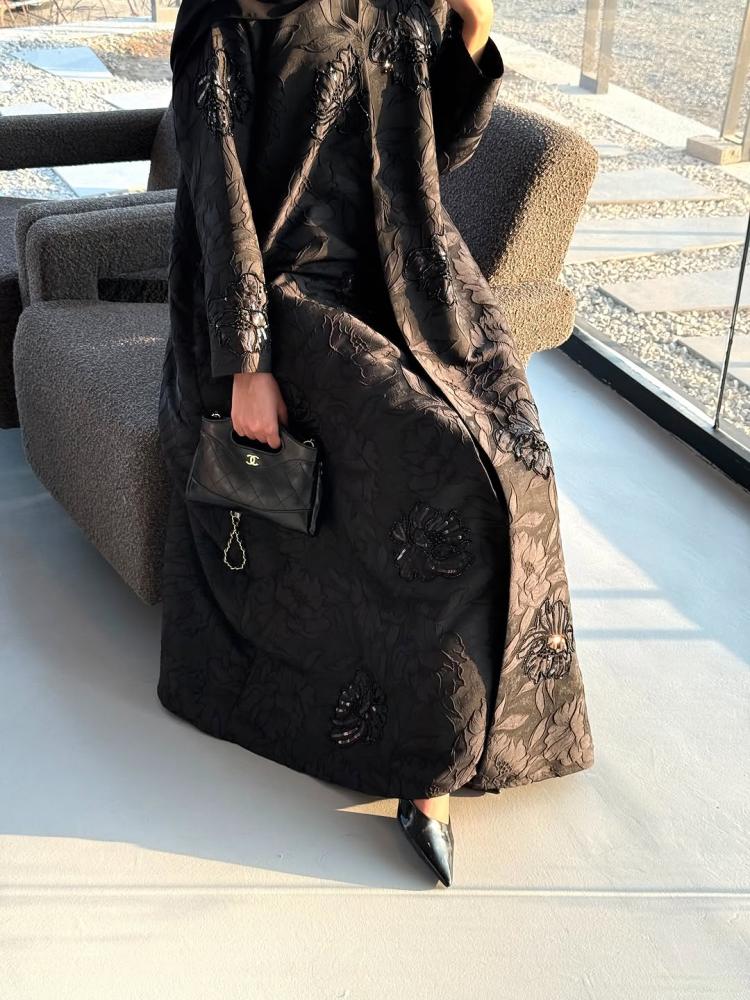 عباية كلوش جاكارد مطرز مع شك من شغلنا