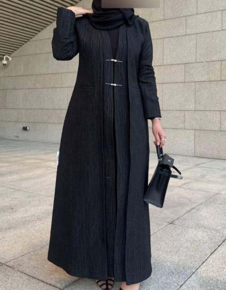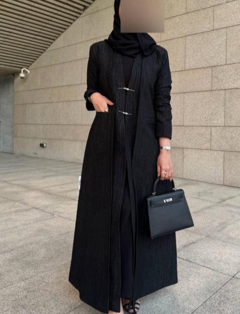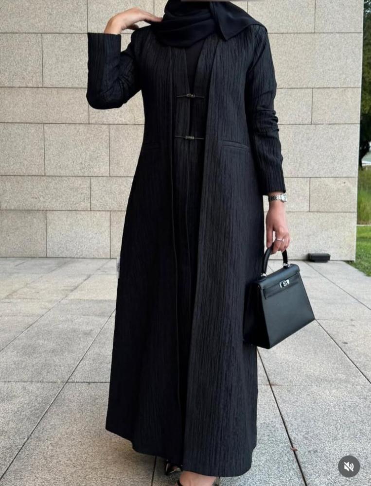 عباية عصرية تخطف الأنظار ✨قماش بنقشة مجعدة فاخرة، قصة انسيابية، وتفاصيل معدنية ناعمة تزيدها أناقة بدون مبالغة 🤍